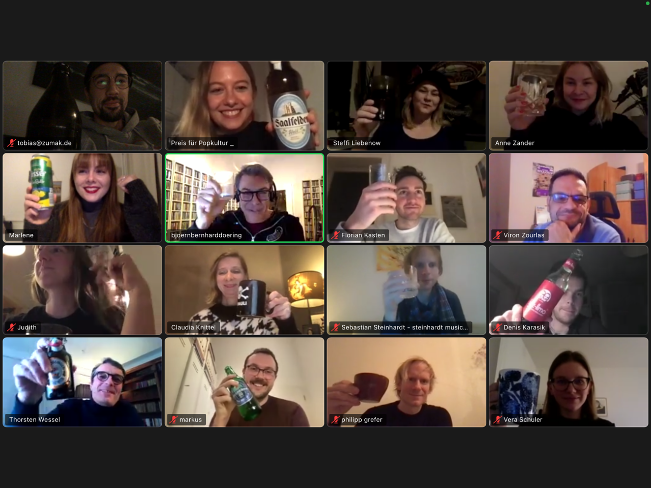 Wir waren ganz überwältigt, dass mehr als 40 Mitglieder zum Auftakt unserer Veranstaltungsreihe dabei waren. War das schön, gemeinsam ein bisschen in neue Musik reinzuhören. Da freuen wir uns doch schon auf das zweite Treffen. Popkulturkneipe #2 findet übrigens am 18. Februar 2021 statt. Alle Mitglieder werden vorab per Mail zum Treffen eingeladen.